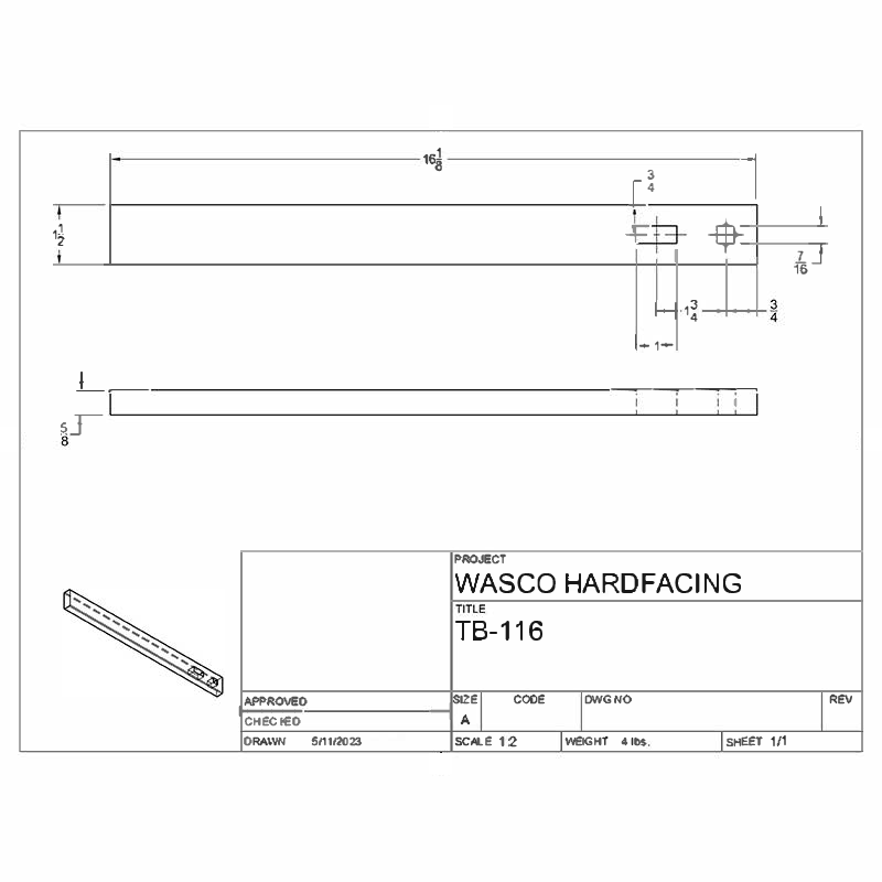 5/8" Thick x 1-1/2" Wide x 16-1/8" OAL